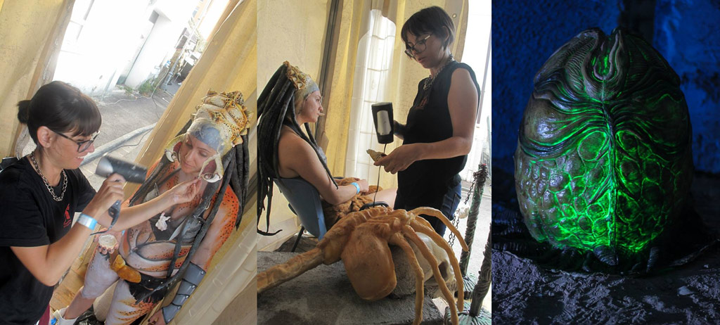 Sono stati creati oggetti di scena tratti dai film di Alien e abbiamo creato un trono stile Predator dove le persone potevano sedersi e farsi fotografare in un contesto sci-fi arricchito dalla presenza di figuranti che indossavano i costumi dei due rivali extraterrestri.