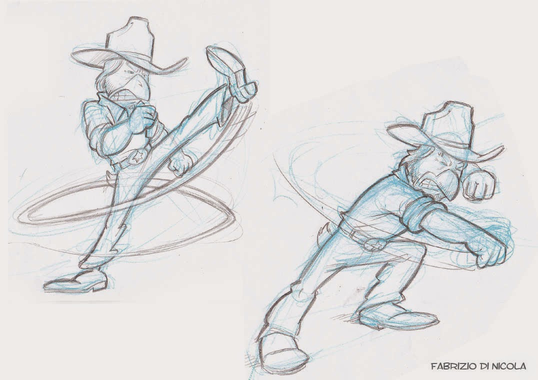 Per i lettori di Topolino, il tratto di Di Nicola è inconfondibile. Qui lo studio per il personaggio/parodia di Quack Norris, ispirato a Chuck Norris